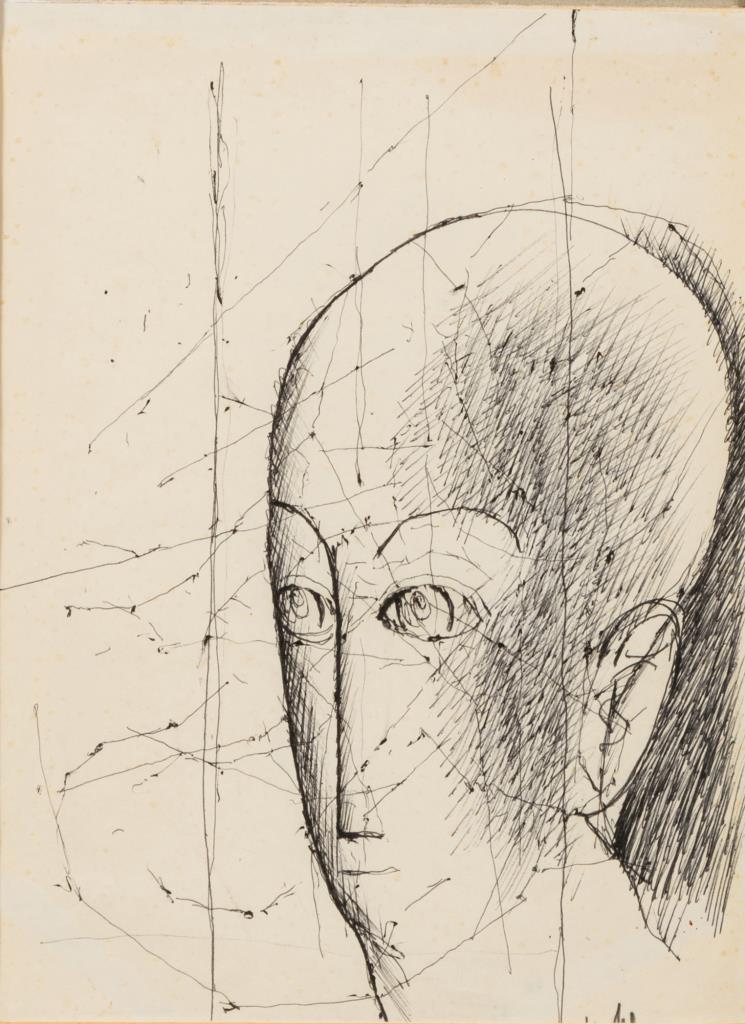 Abstrahierter Kopf. Ränder etwas geknickt, etwas stockfleckig.