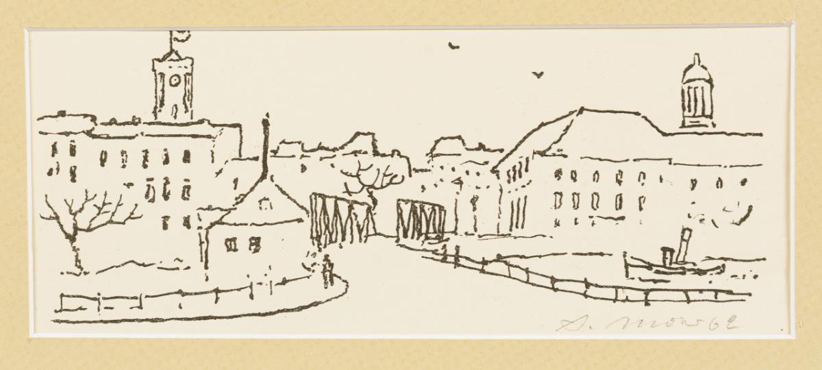 Blatt: 9 x 20 cm, im Passepartout: 16,5 x 33 cm.