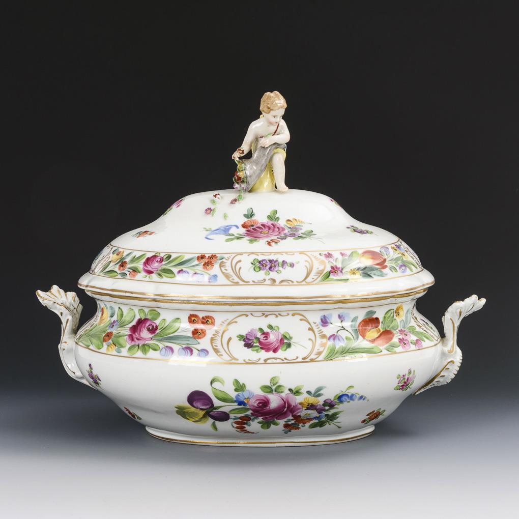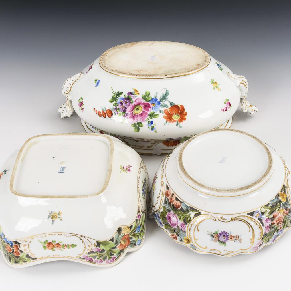 Terrine und 2 Durchbruchschalen. Potschappel.