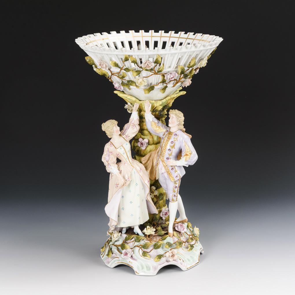 Tafelaufsatz mit galantem Paar. Schierholz.