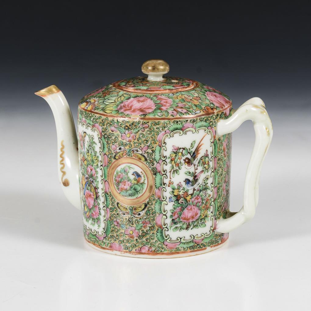 Teekanne mit Blumenmalerei 'famille verte'.