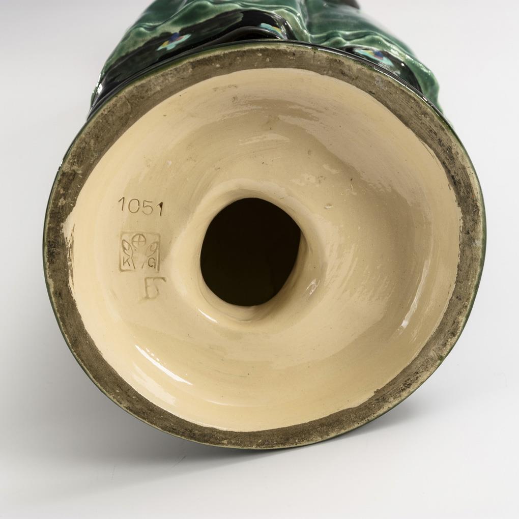 Steingut, farb- und goldstaffiert. H 31,5 cm.