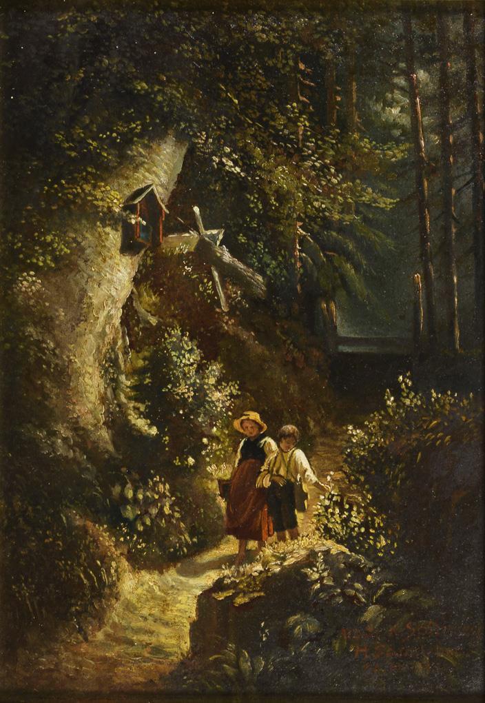 Kopie nach Spitzweg: Kinder auf Waldweg