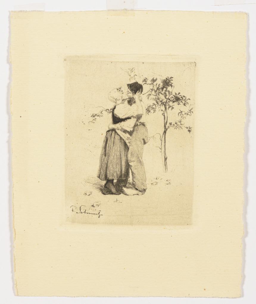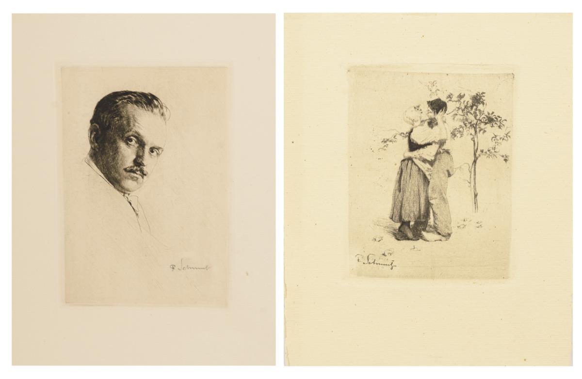 Der Kuss, Platte: 12 x 10,5 cm, Blatt: 19,5 x 15 cm; Passepartout: 38 x 30,5 cm | Selbstbildnis, Platte: 19,5 x 14 cm, Blatt: 34,5 x 26 cm, Passepartout: 44,5 x 36 cm.