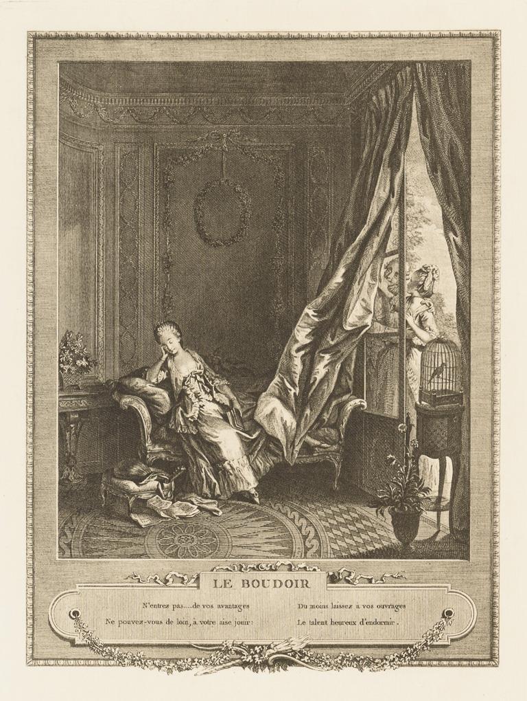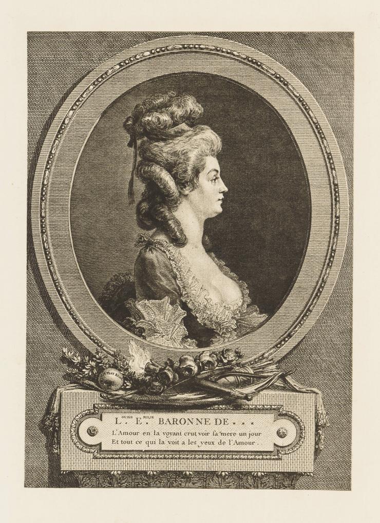 Nach Gemälden des 18. Jh: Porträt von "Adrienne Sophie Marquise de ***" | Porträt von "Louise Emilie Marquise de ***" | "Le Boudoir" | "Les Amours Champetre" | "Le Jour" | Theaterszene | "Le Bal Paré" | "Le Concert", verso stockfleckig | "L'Heureux Moment" | "L'Évenément au Bal".
