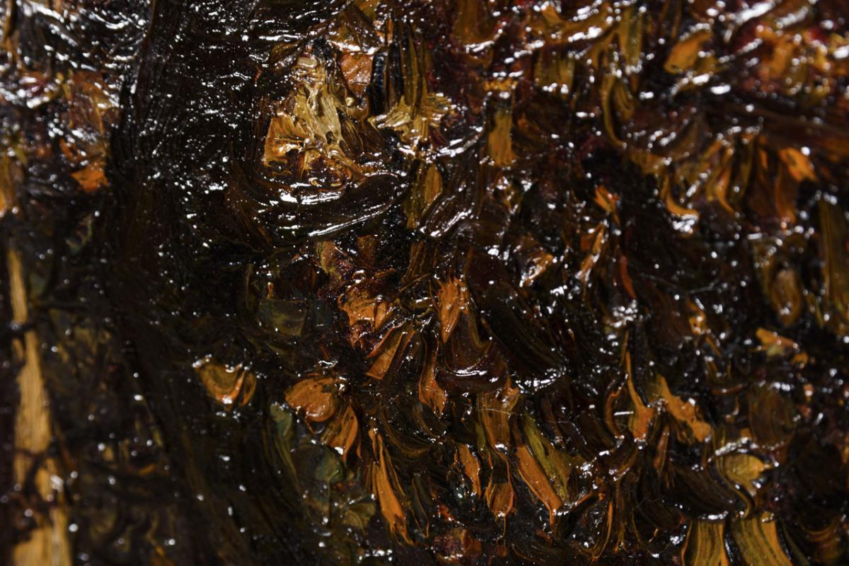 Pastos gemalte Flusslandschaft mit Staffagefiguren nahe dem Ufer und dem Haus in der Abendsonne.