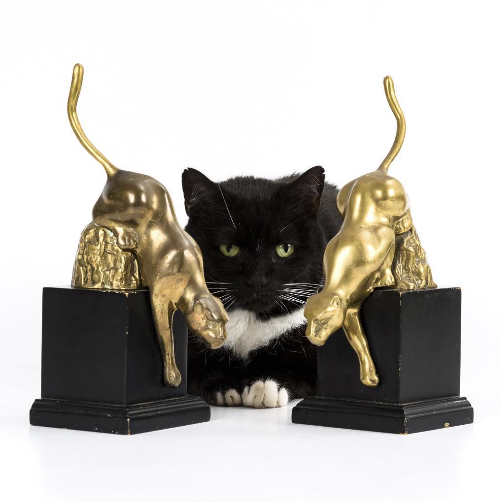 Paar Art-déco-Buchstützen mit Panthern