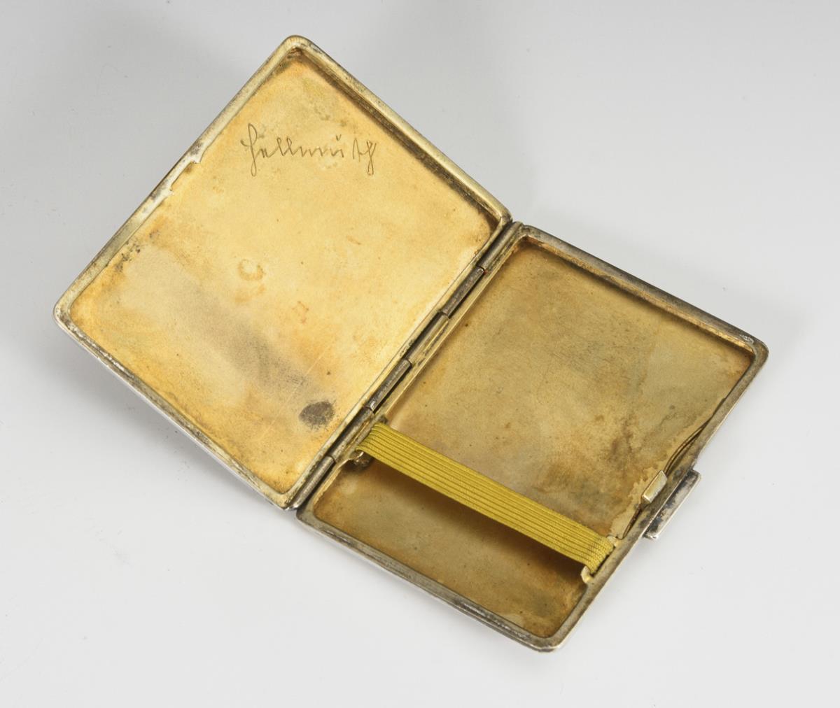Flaches Etui, innen graviert "Hellmuth". Gebrauchsspuren.