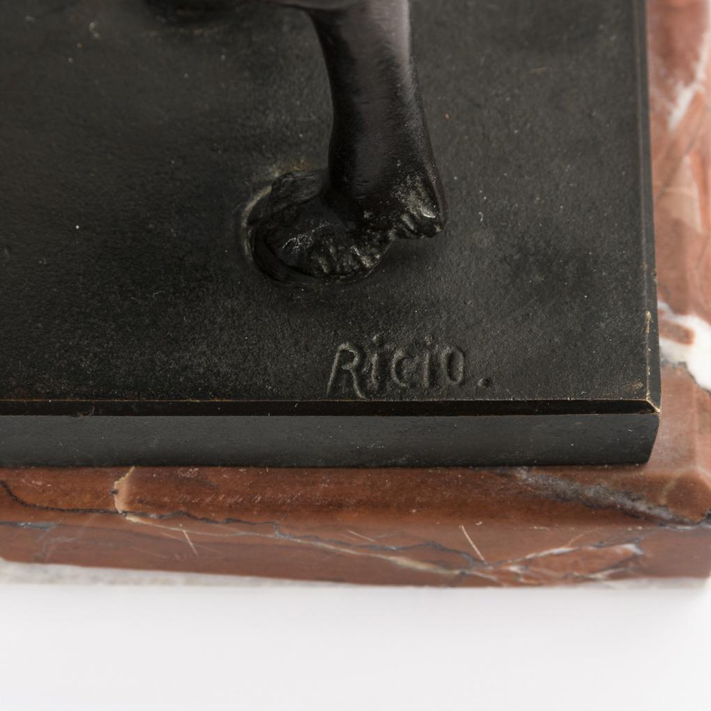 Bronze schwarzbraun und dunkelgrün patiniert, rote Marmor-Plinthe. "Ricio" bezeichnet, Gießermarke "BS". H 17,5 / 19 cm.