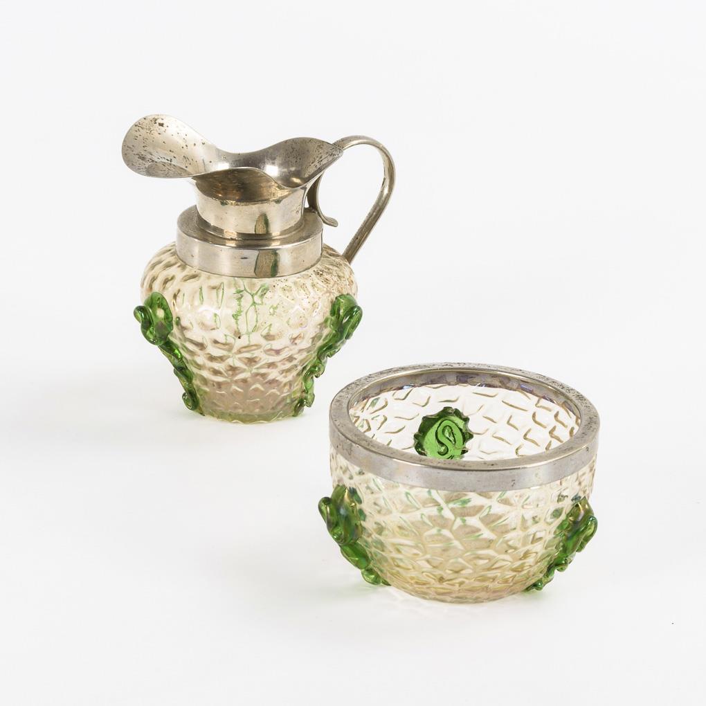 Sahnegießer und Zuckerschale "Nautilus". Lötz.