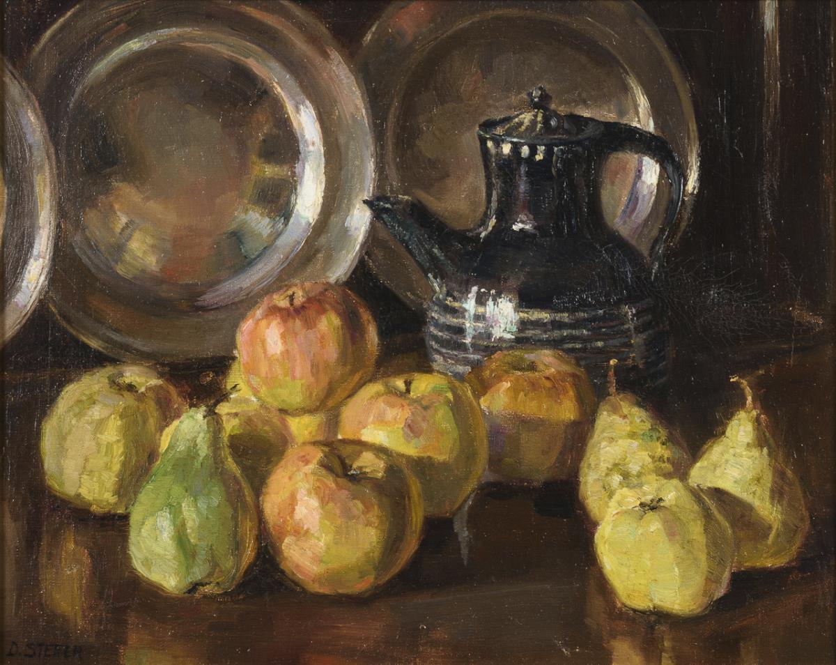 Stillleben mit Äpfeln und Zinngeschirr