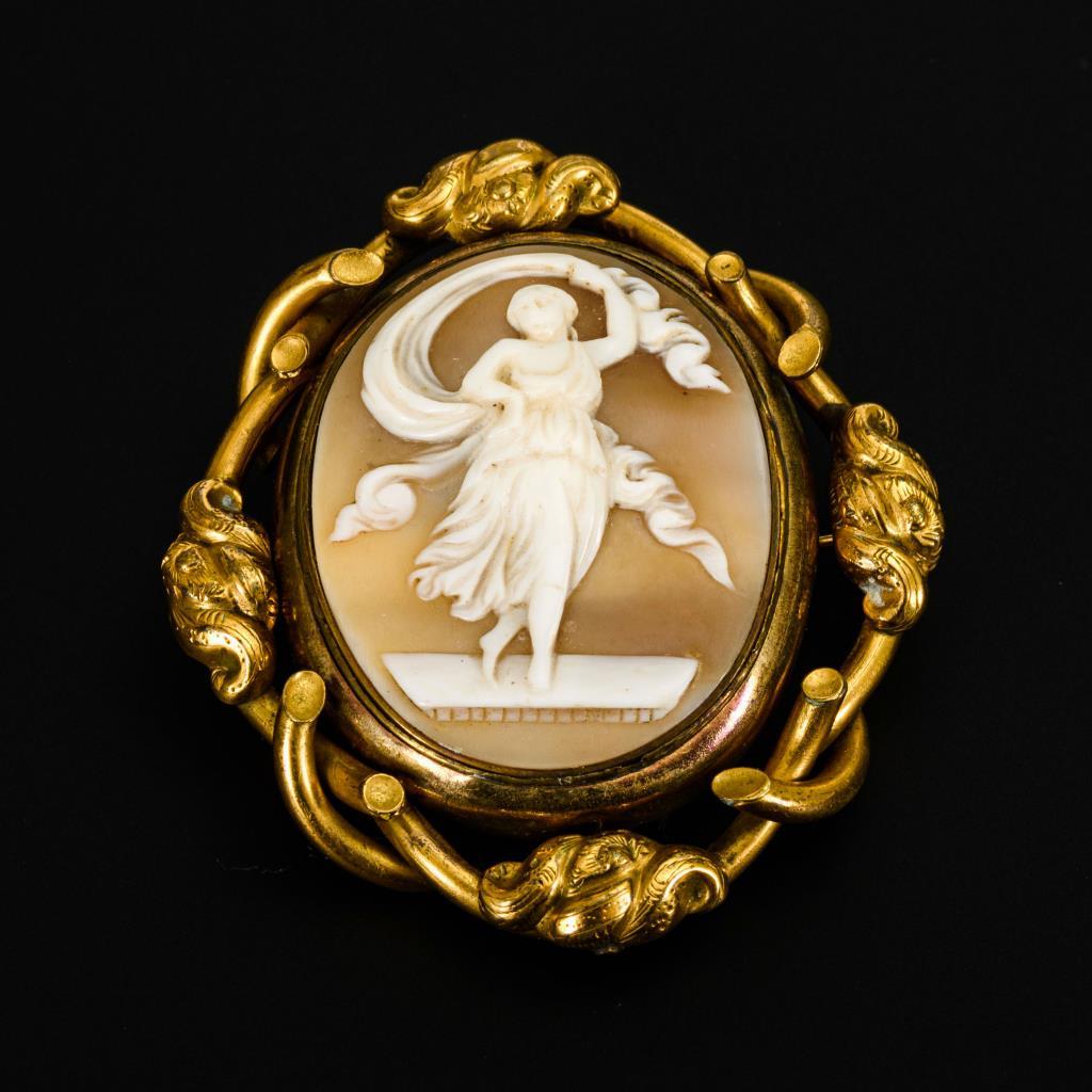 Große Dreh-Medaillonbrosche mit Muschelkamee