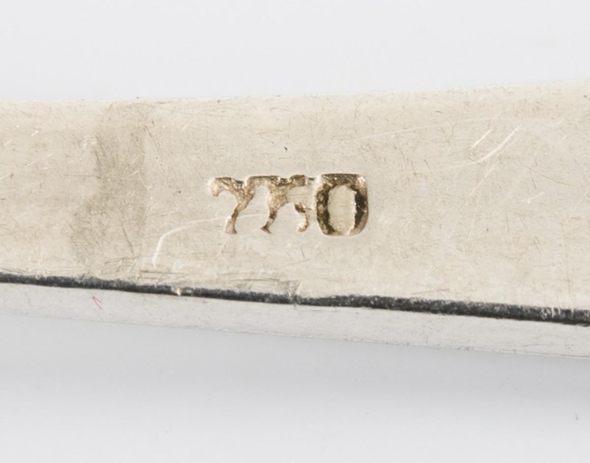 12 Silberfiligran-Löffel + Gäbelchen in Schatulle.