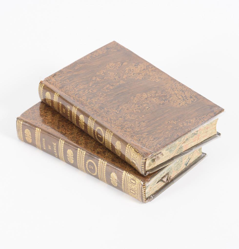 368 und 460 Seiten, in sehr gut erhaltenen Kalbsledereinbänden, Marmorschnitt. Französische Sprache.