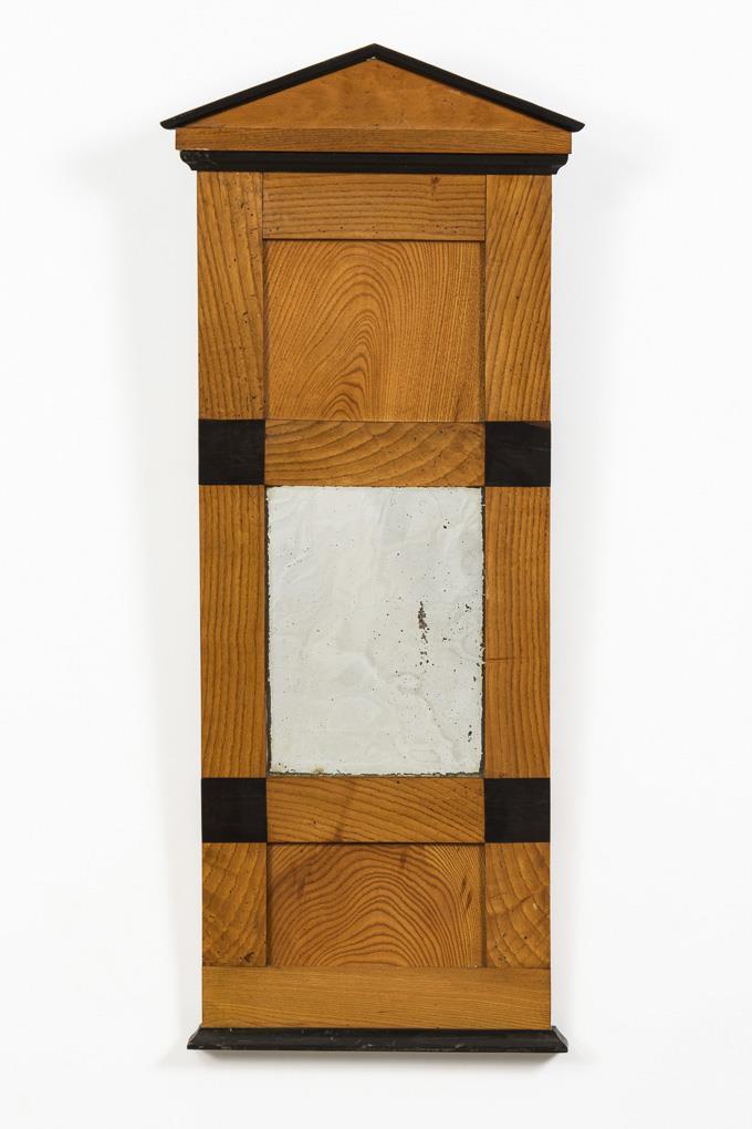 Schlichter Wandspiegel mit Füllungsfeld und Dreiecksgiebel. Alt restauriert, Spiegelglas ergänzt und schlierig.
