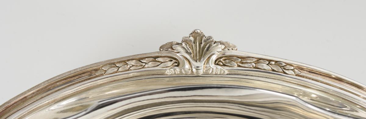 Silber. 10 x 27 x 18 cm. 627 g.