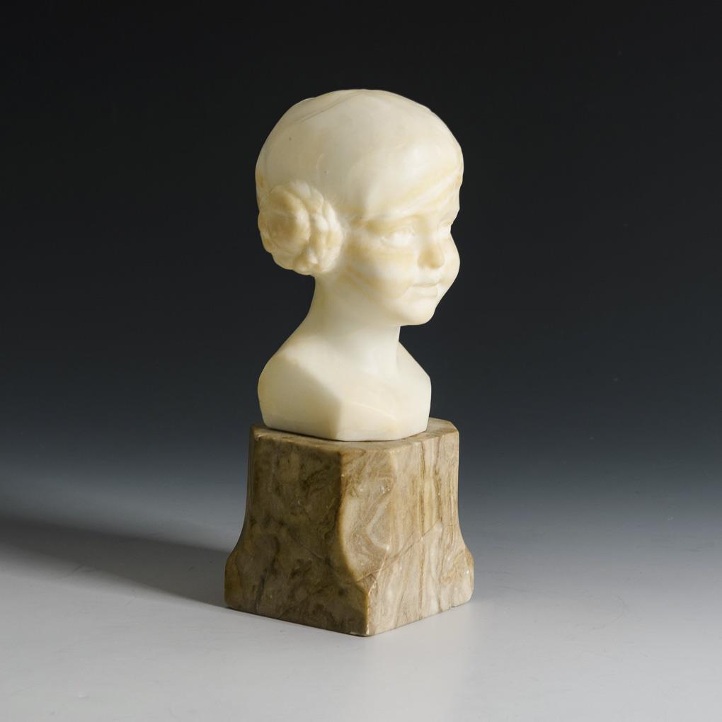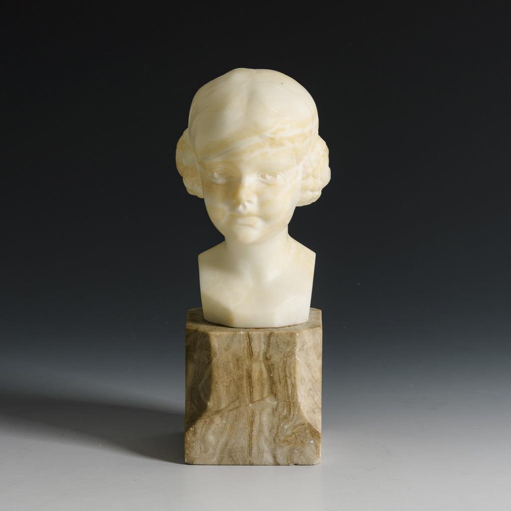 Alabaster, grauer Alabaster-Sockel. Um 1900. Gravierte Bezeichnung mit Nr. "161". H 12,5 / 19,5 cm.