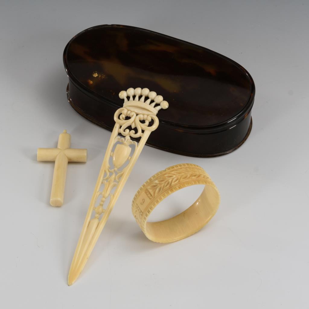 Schildpatt-Dose und 3 Kleinteile Elfenbein