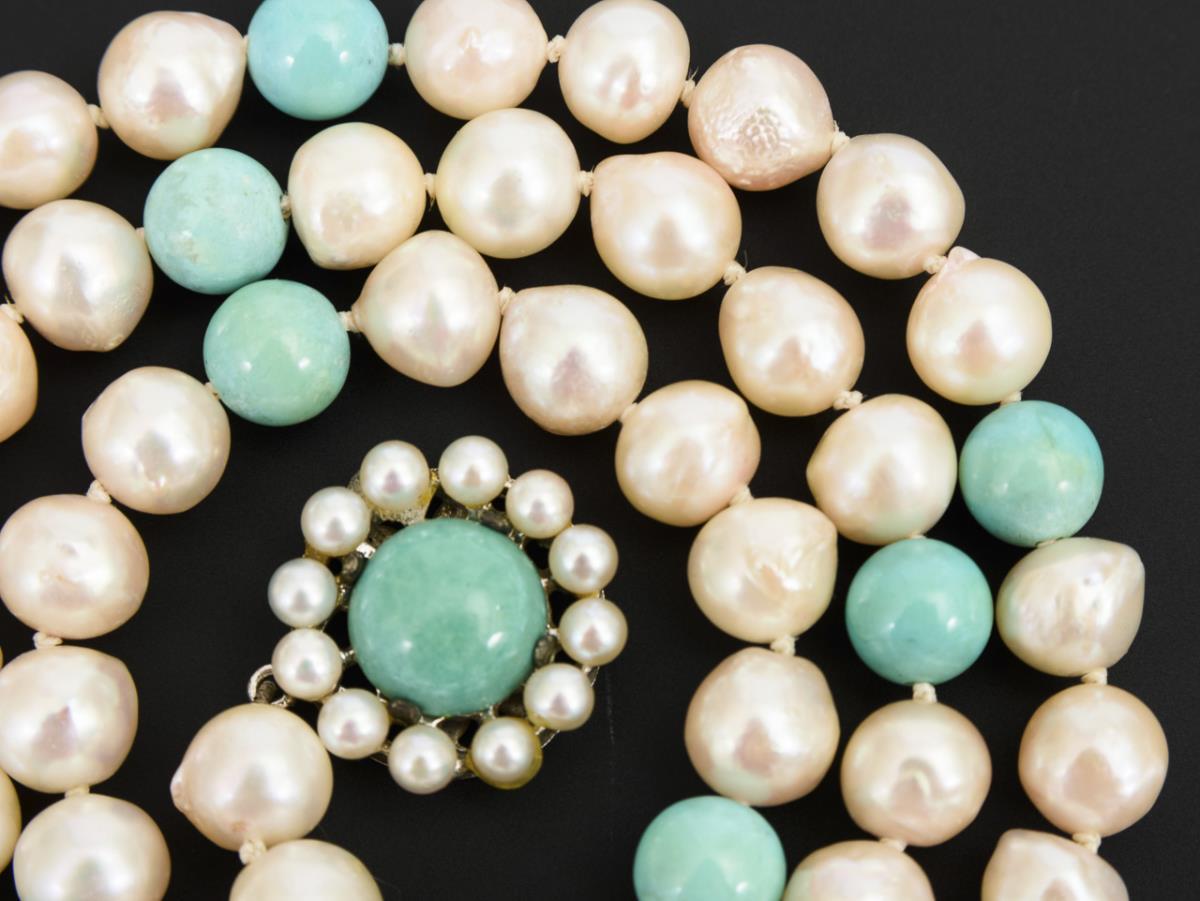 Zuchtperlenkette mit Türkisen.