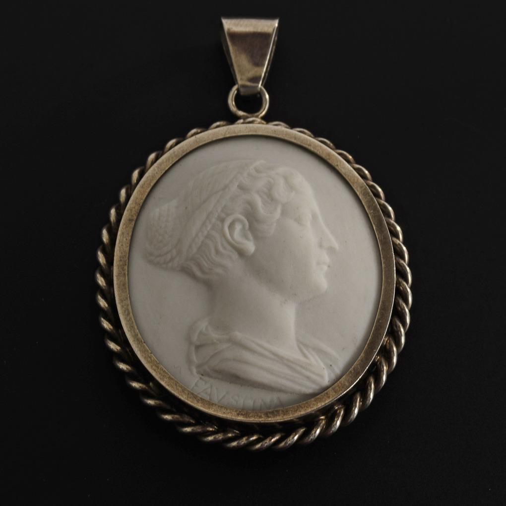 Zargengefasster, antikisiert reliefierter Frauenpofilkopf "Faustina".