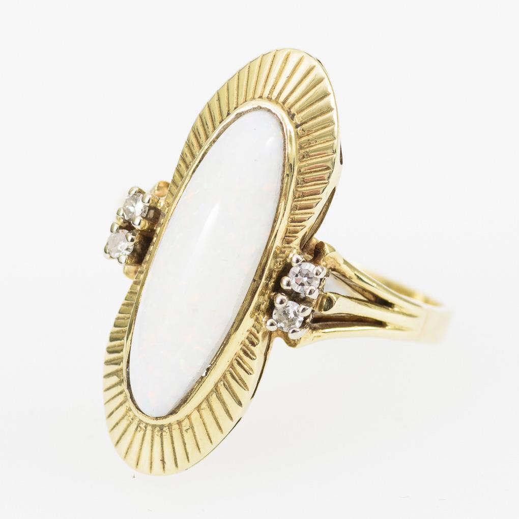 You are here: Home Categories Jewelry Ring mit Weißem Opal und Diamanten