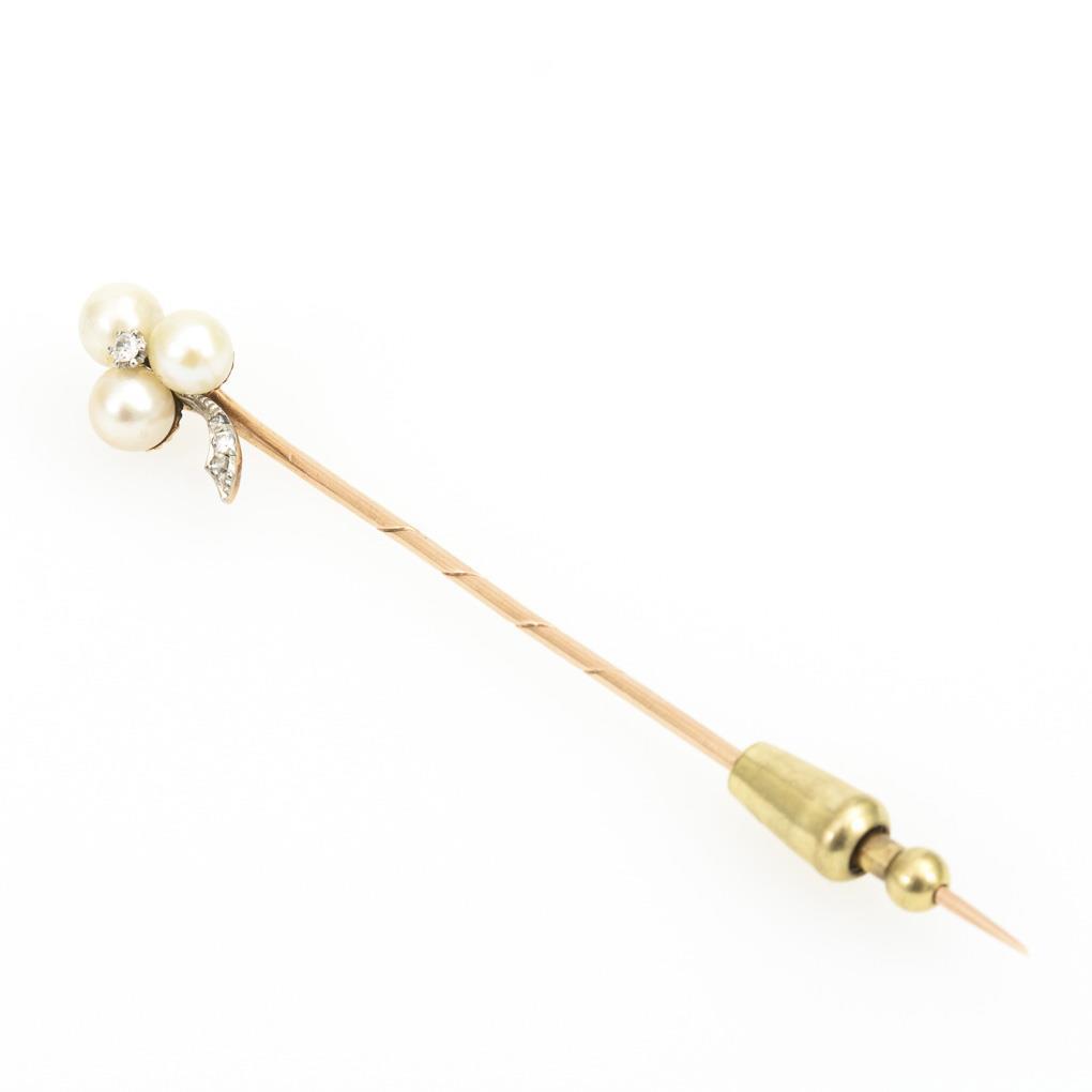 Krawattennadel mit Zuchtperlen und Altschliff-Diamanten, um 1900.