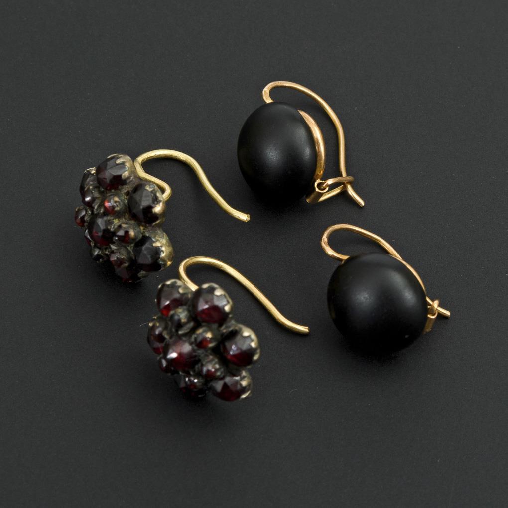 You are here:   Home Categories Jewelry 2 Ohrhängerpaare mit Granaten und Gagat?