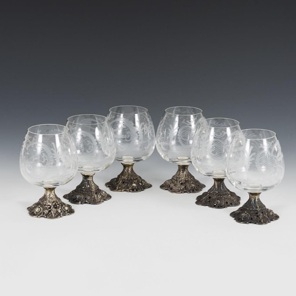 6 Gläser mit Silberfüßen. J. D. Schleissner & Söhne.