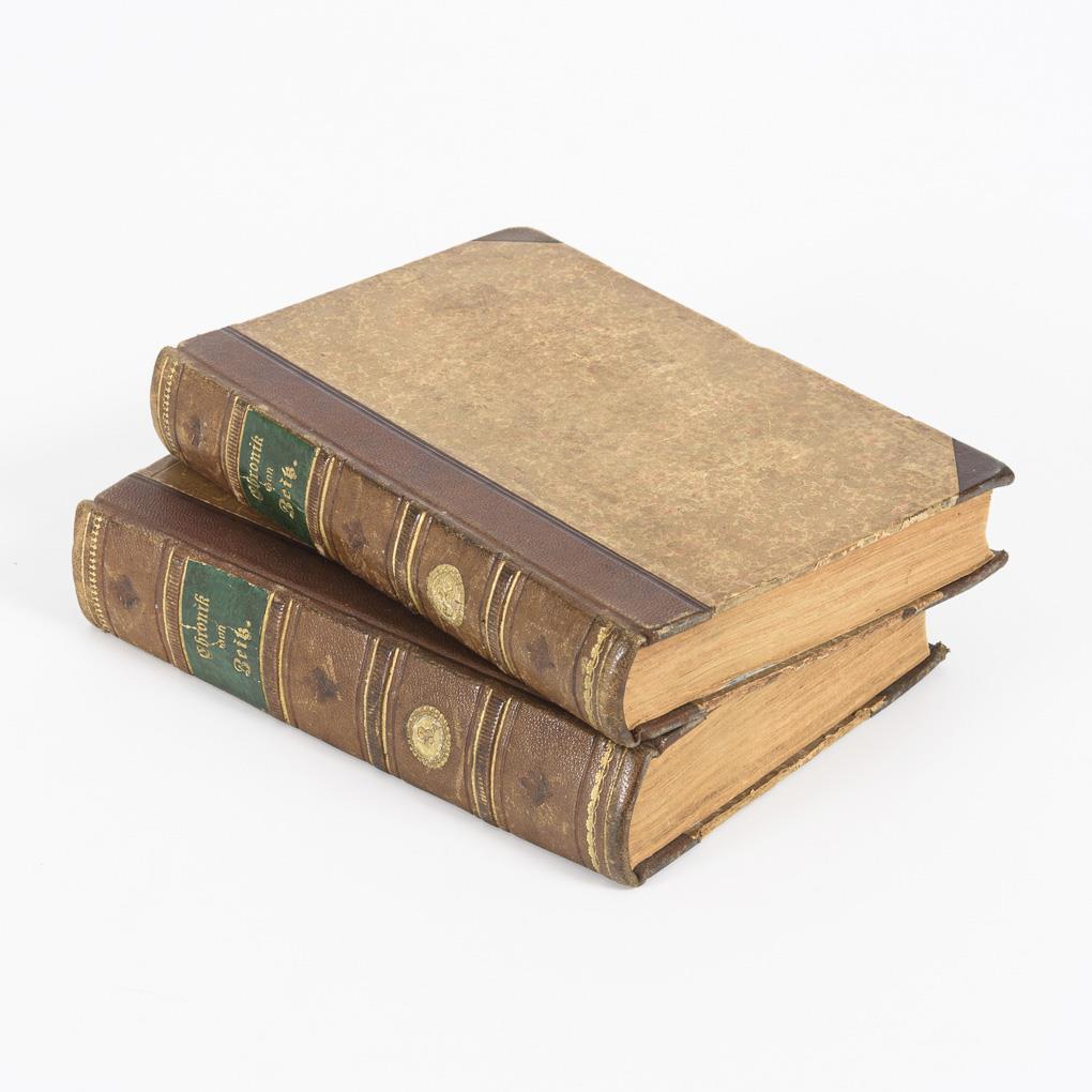L. Rothe: "Historische Nachrichten aus der Geschichte der Stadt Zeitz", 1892, 2. unveränderte Auflage, 481 Seiten. / Ernst Zergiebel: "Geschichtliche Mittheilungen über die Stadt Zeitz und die Dörfer des Zeitzer Kreises ...". 1894. 580, 14 Seiten. Einheitlich in Halbleder gebunden und als Band 2 und 3 gekennzeichnet.