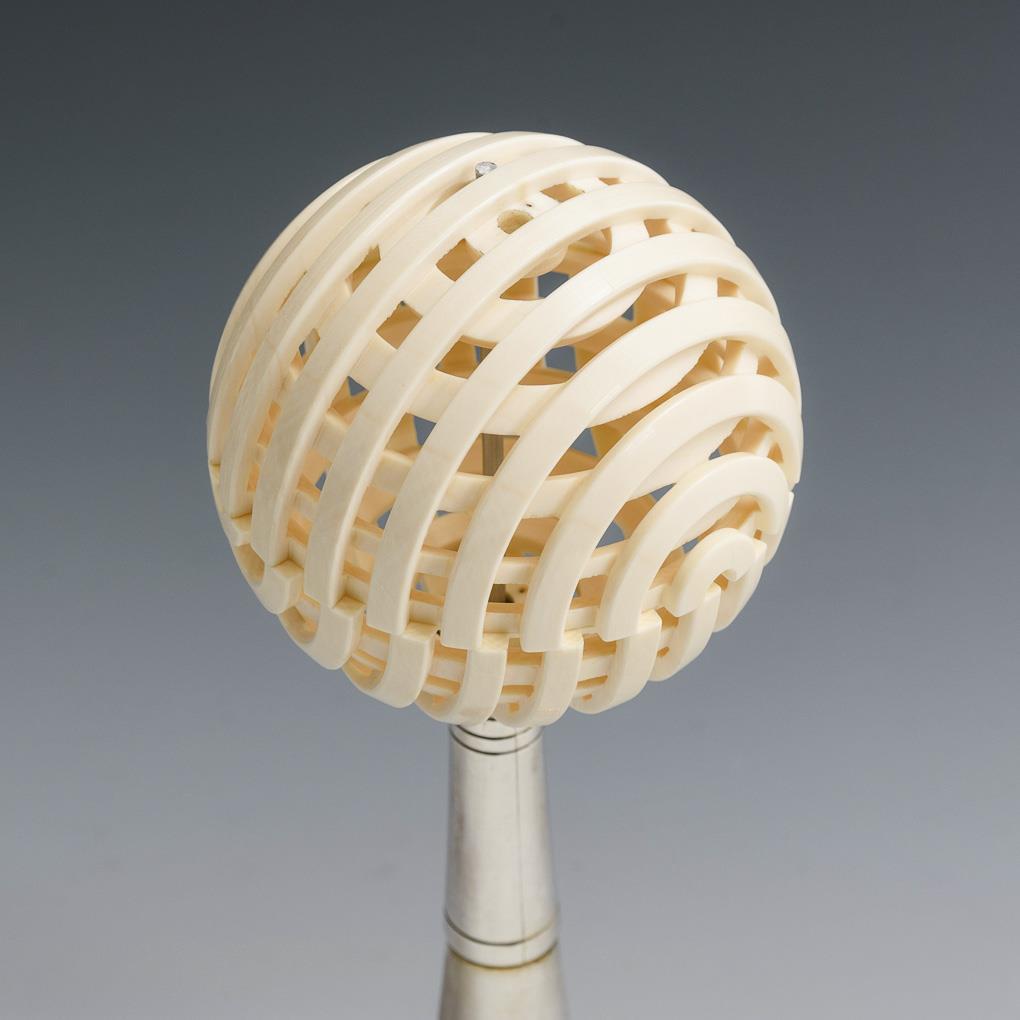 Elfenbein-Zierkugel auf Silberfuß.