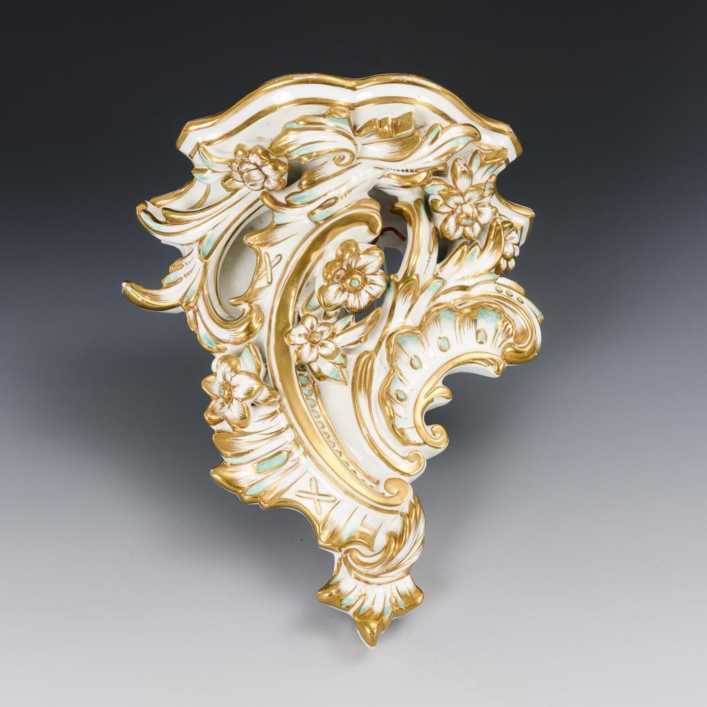 Teils durchbrochene Konsole in Rocailleform. 1 Blattspitze bestoßen, minimaler Goldabrieb.