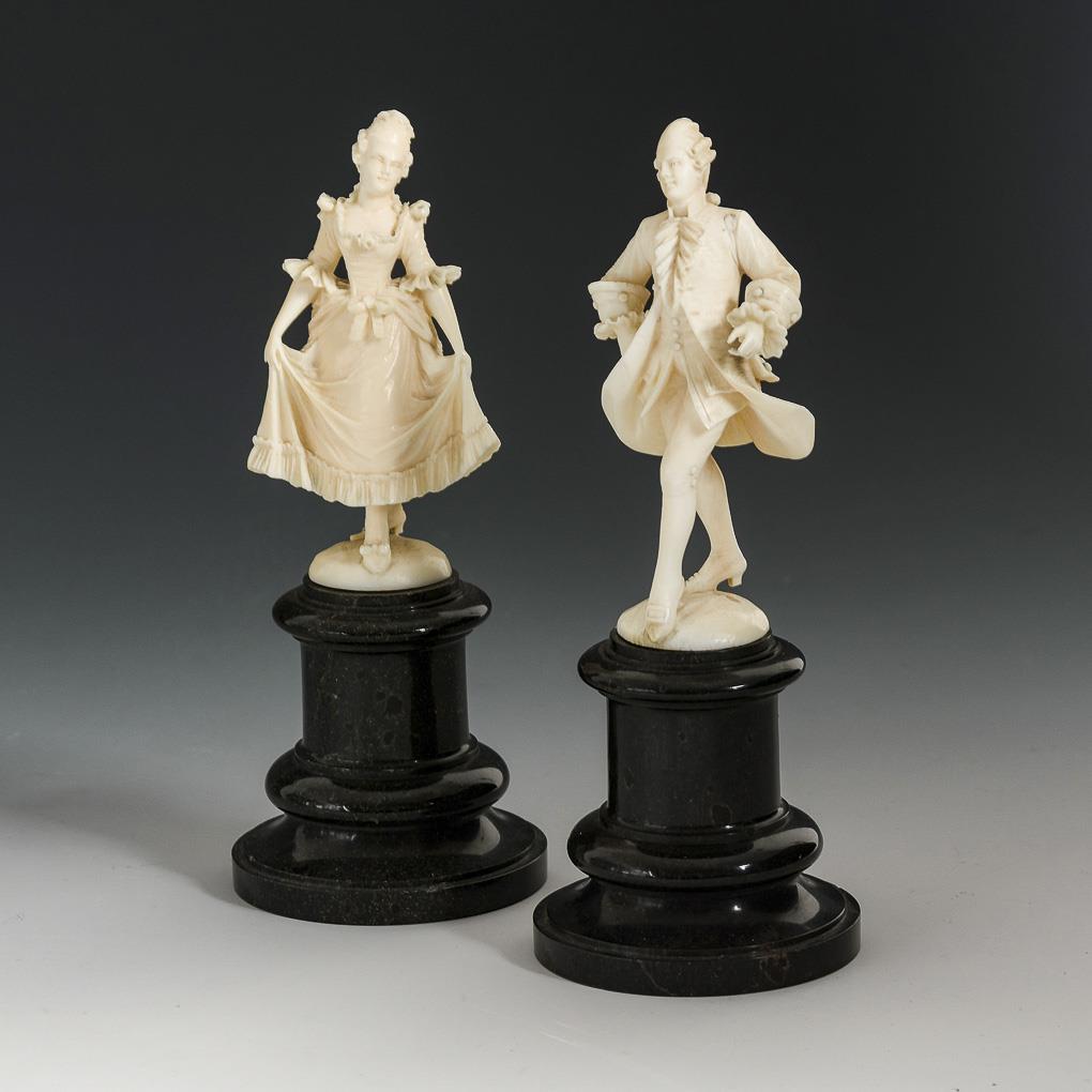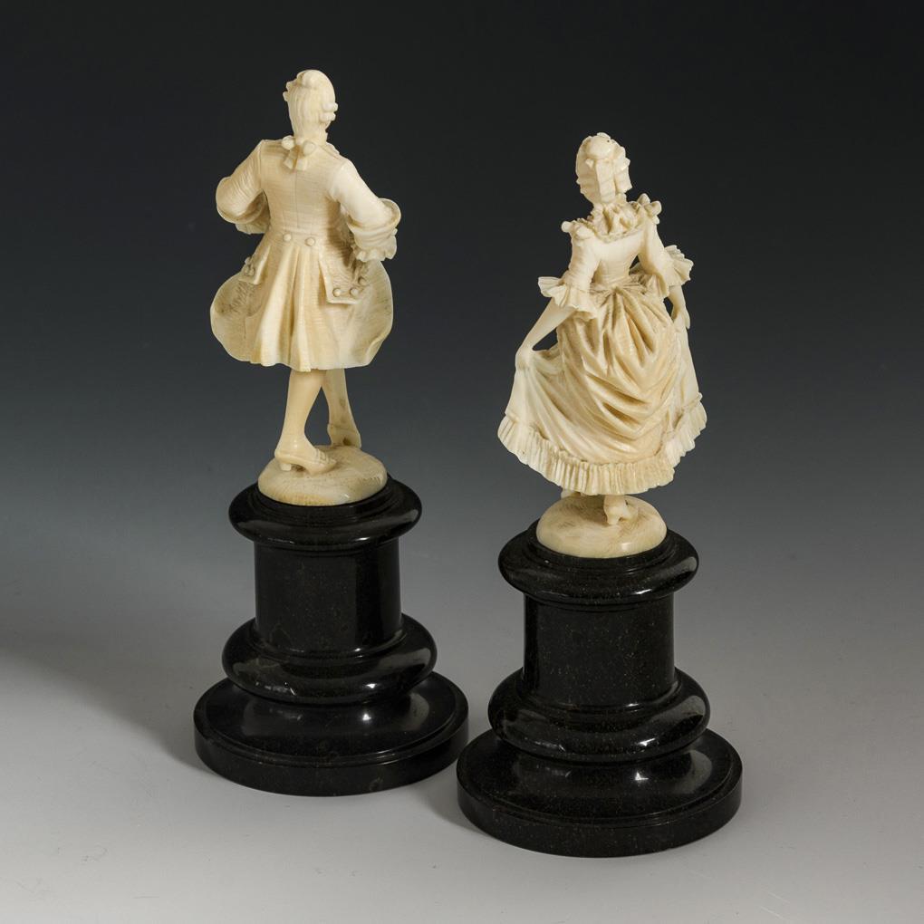 2 Elfenbeinfiguren: Rokoko-Dame und -Herr.