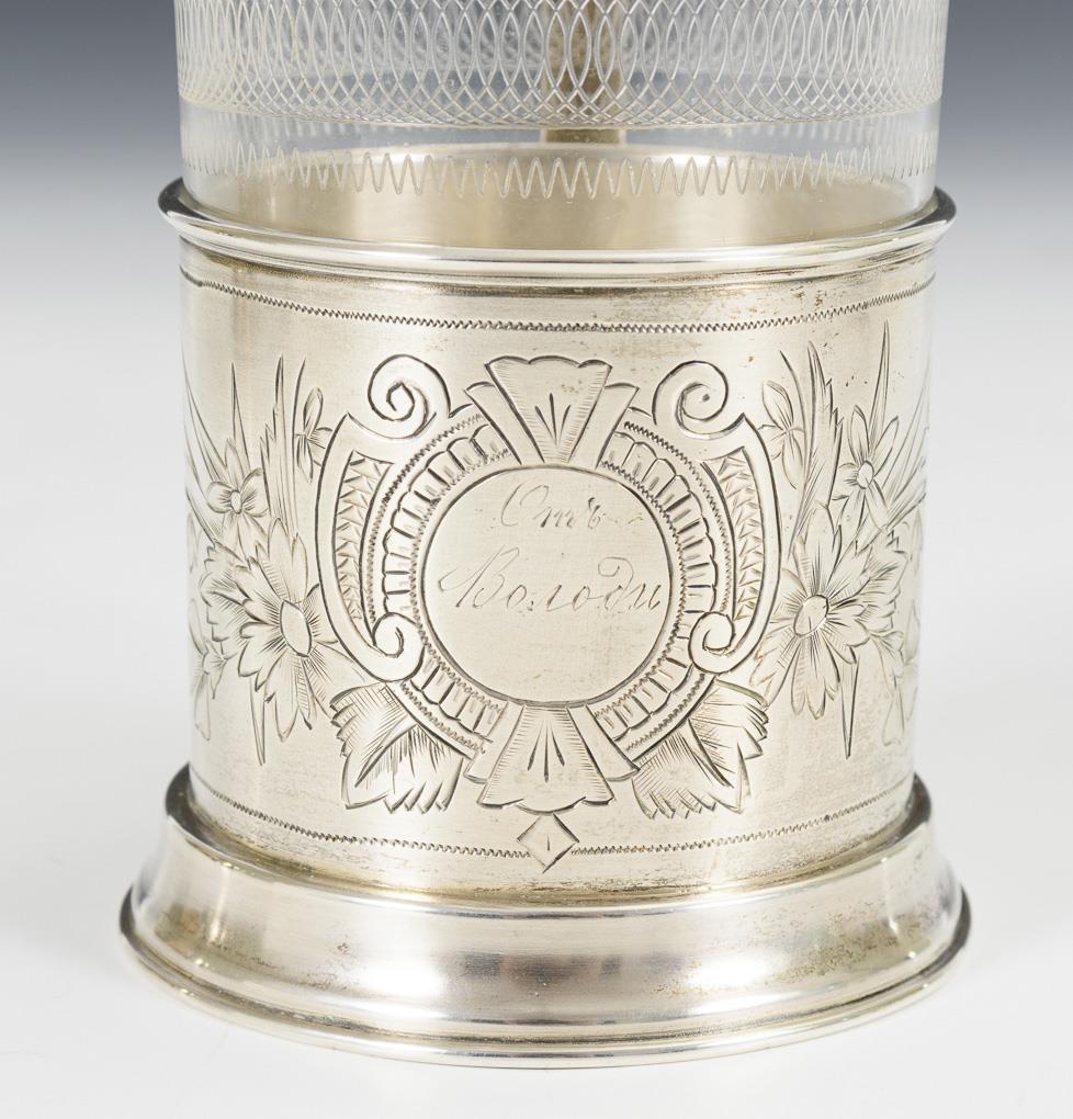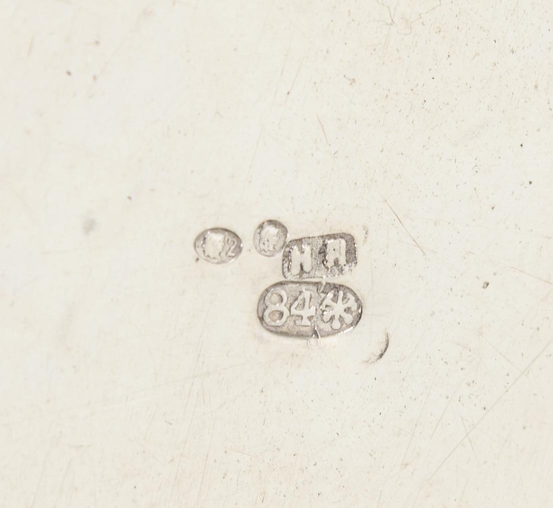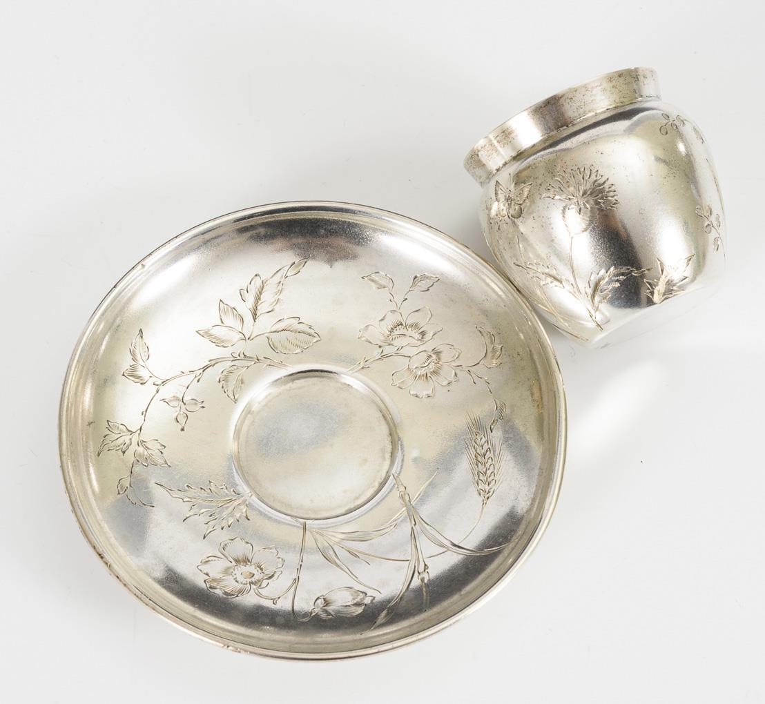 5 Kleinteile Silber: Tasse mit UT, Kännchen, Teeglas, Ei auf Ständer. Meist Russland.