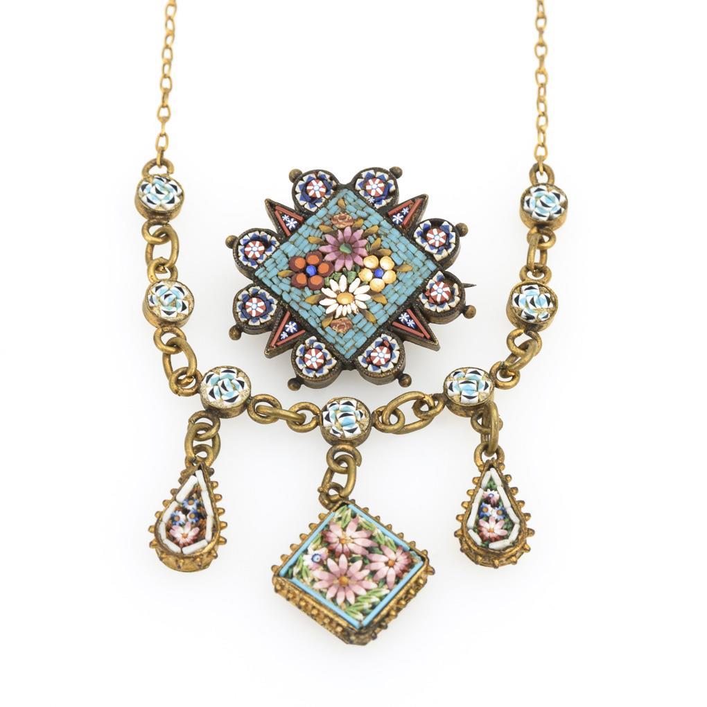 Italienisches Mosaikcollier und Brosche.