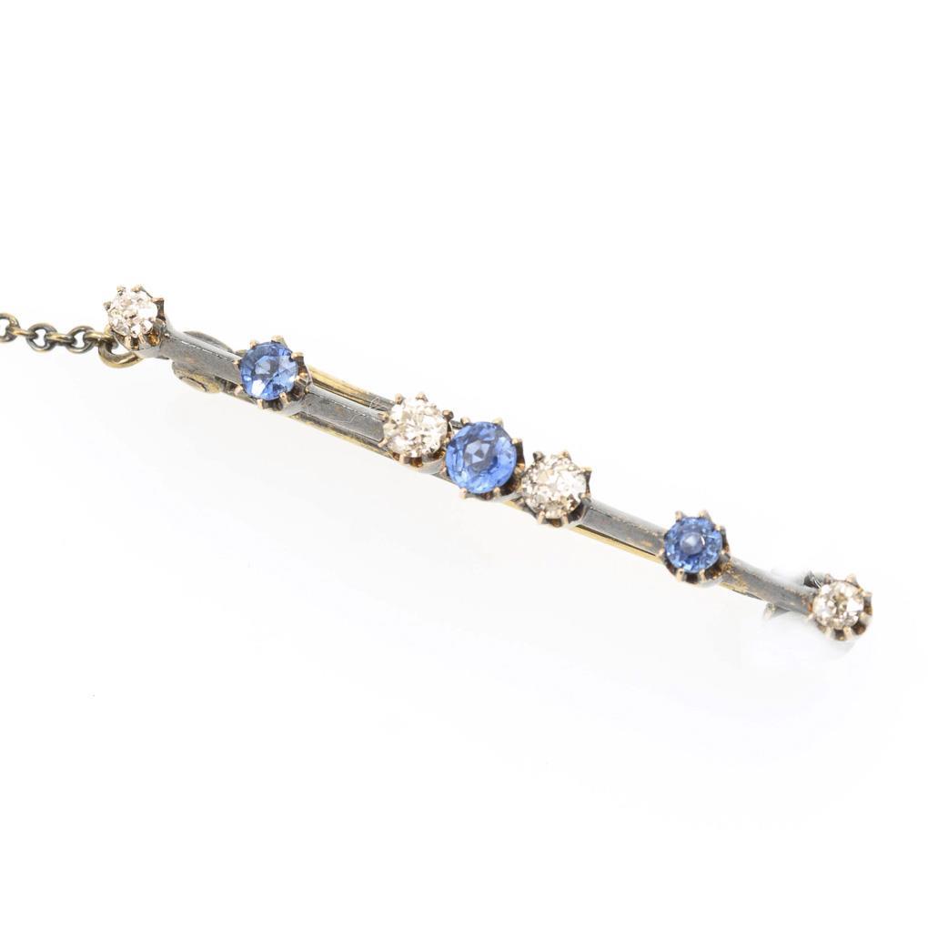 Art-déco-Nadel mit Altschliff-Diamanten und Saphiren.