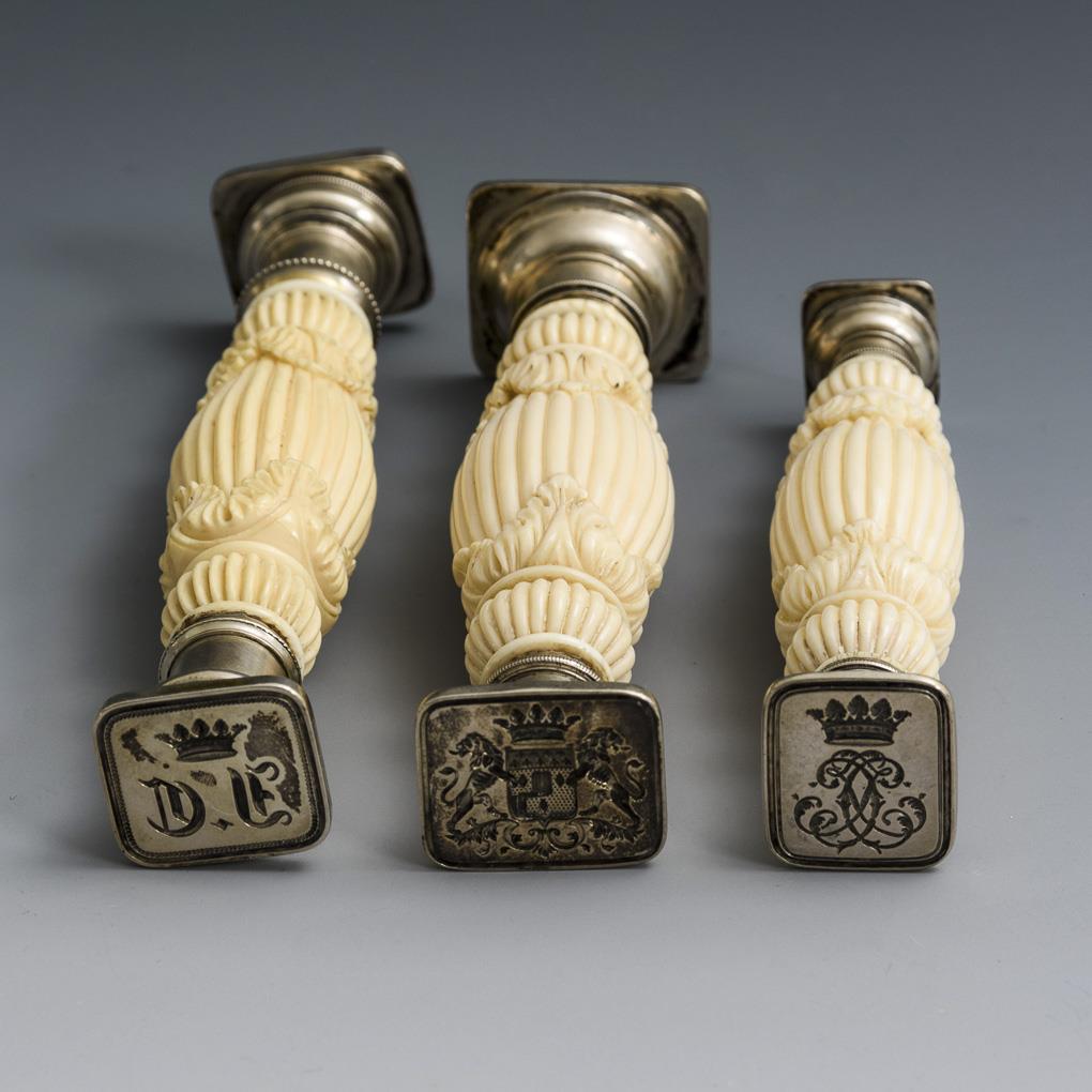3 Elfenbein-Petschafte mit Silber-Typaren.