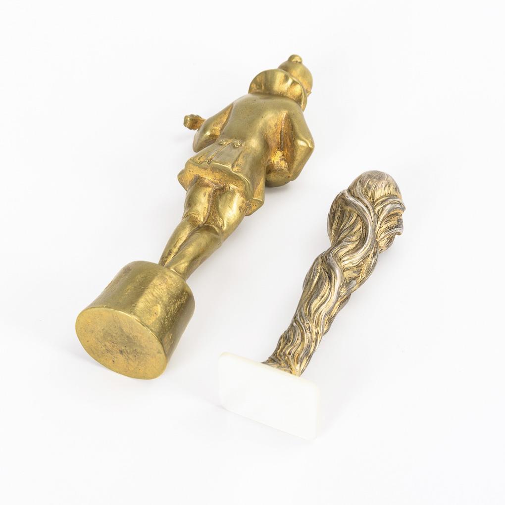 Silber mit Perlmutt-Plinthe bzw. Bronze. H Pierrot 11,5 cm, H Mädchenkopf 8,2 cm. Silber: 101 g.
