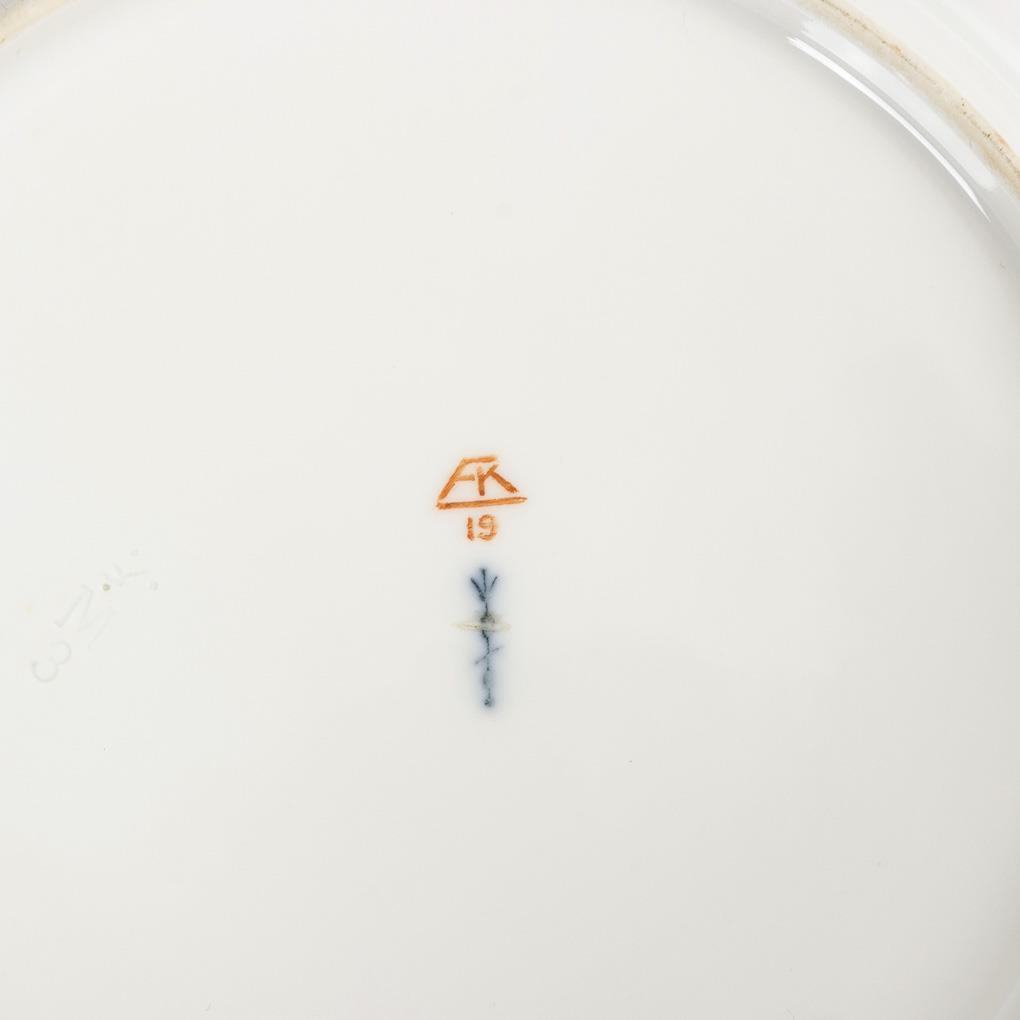 Polychrom bemalt, goldstaffiert. Ø 24,5 cm.
