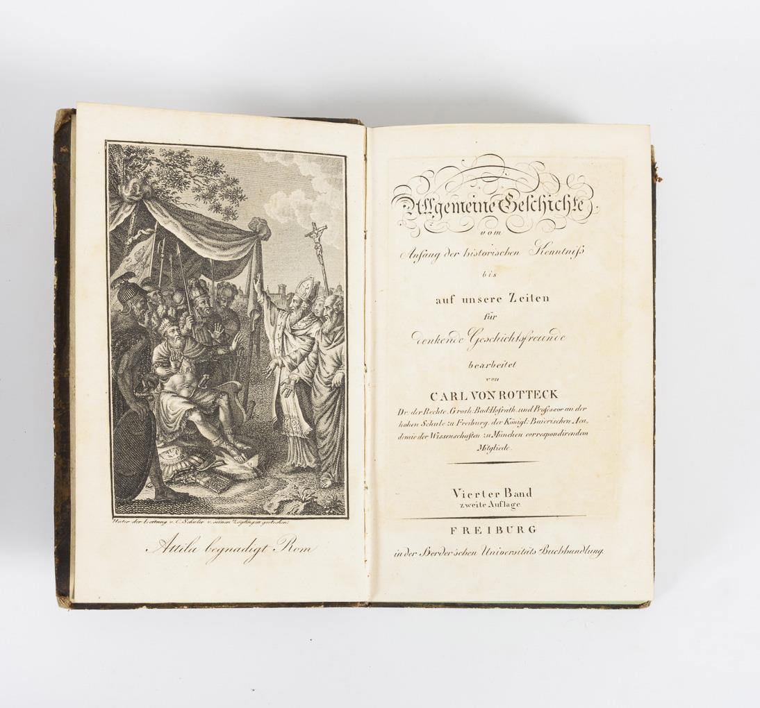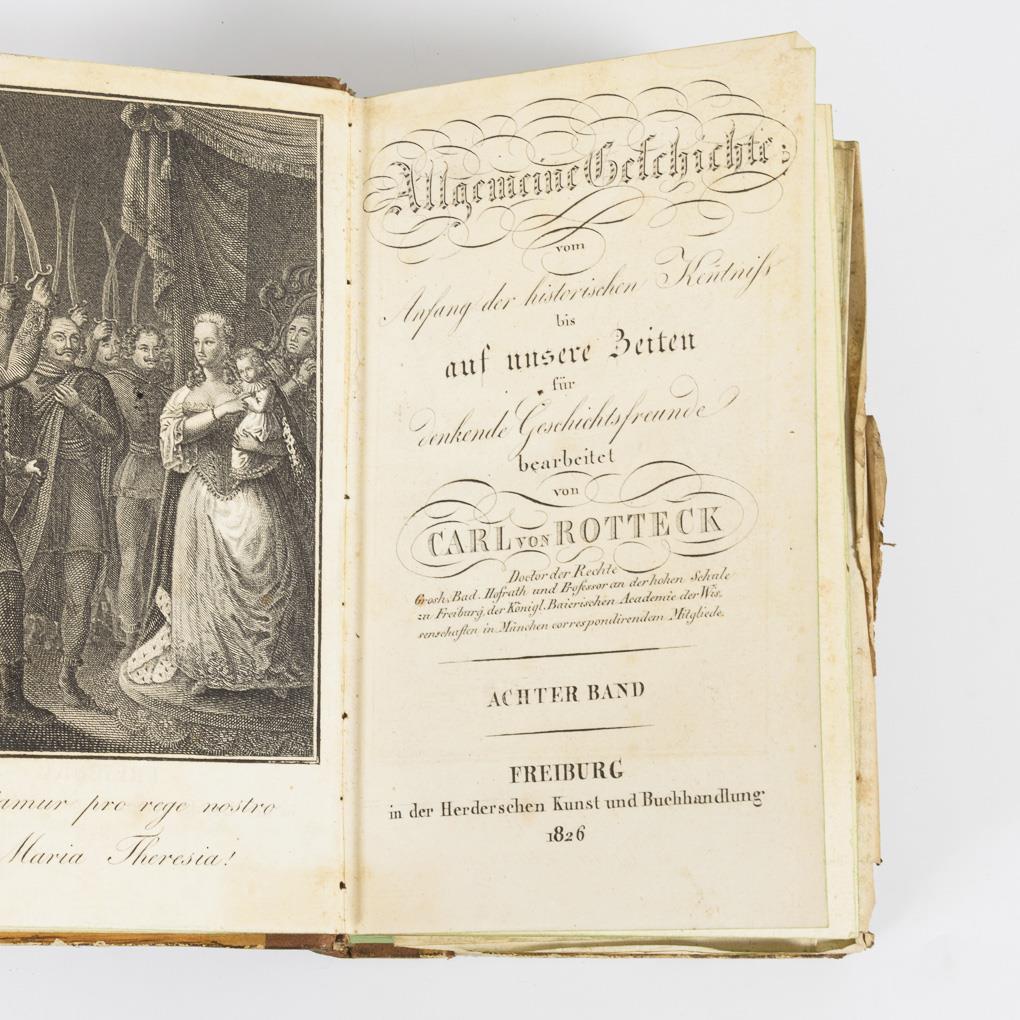 3. Band: "Von Augustus bis Theodosius, oder von der Schlacht bey Atrium bis zur großen Völkerwanderung", 6, 258 Seiten. / 4. Band: "Von Theodosius M. bis Karl M.F.d.W. 395 - 800", 498 Seiten. / Band 8: "Geschichte vom Westphälischen Frieden bis zur Französischen Revolution, 1648 - 1789", 644 Seiten. Alle im Halbleineneinband, Grünschnitt. Altersgemäße Gebrauchsspuren.
