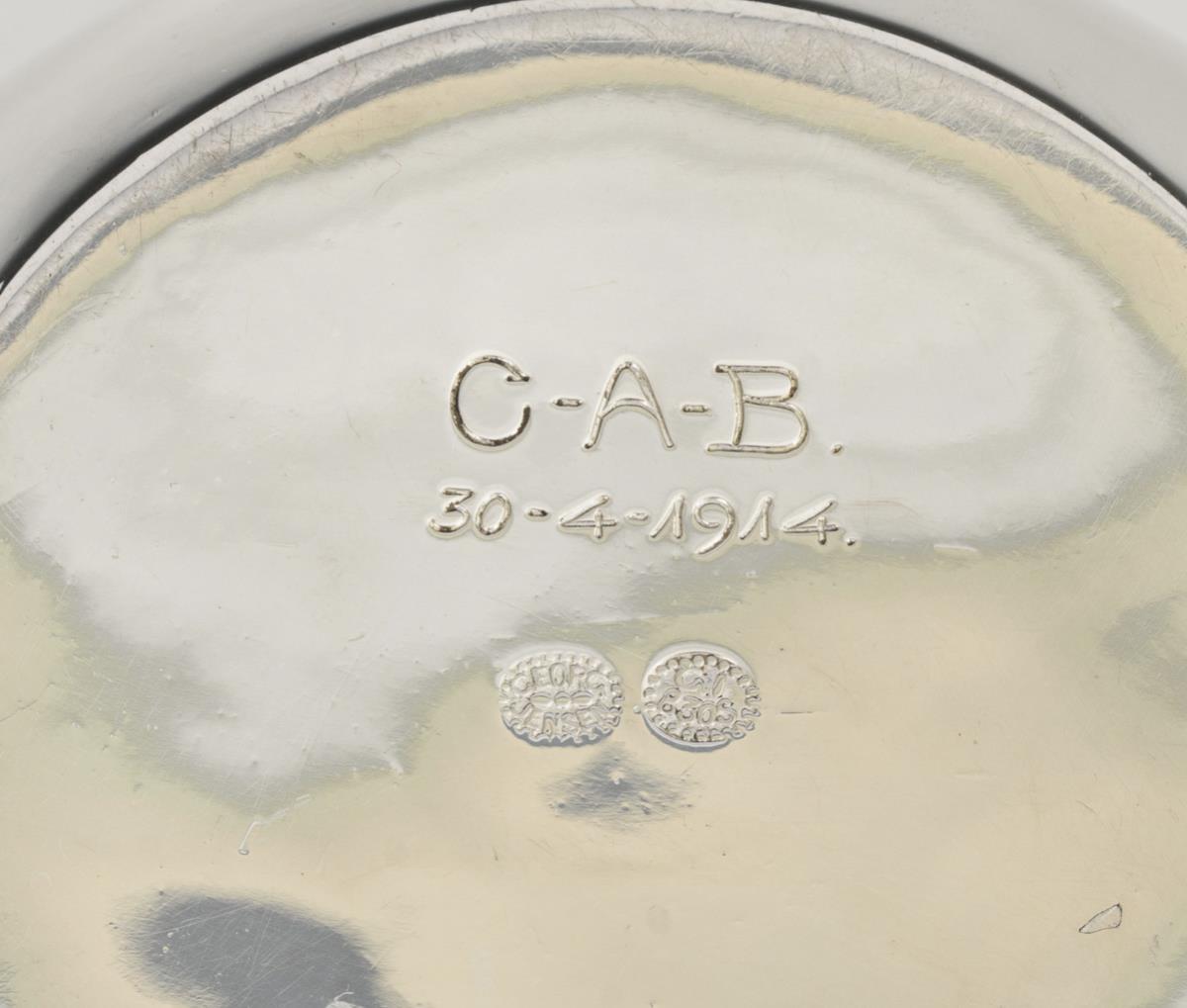 Kleine runde Schale. Unterseitig graviert: "C-A-B 30. 4. 1914".