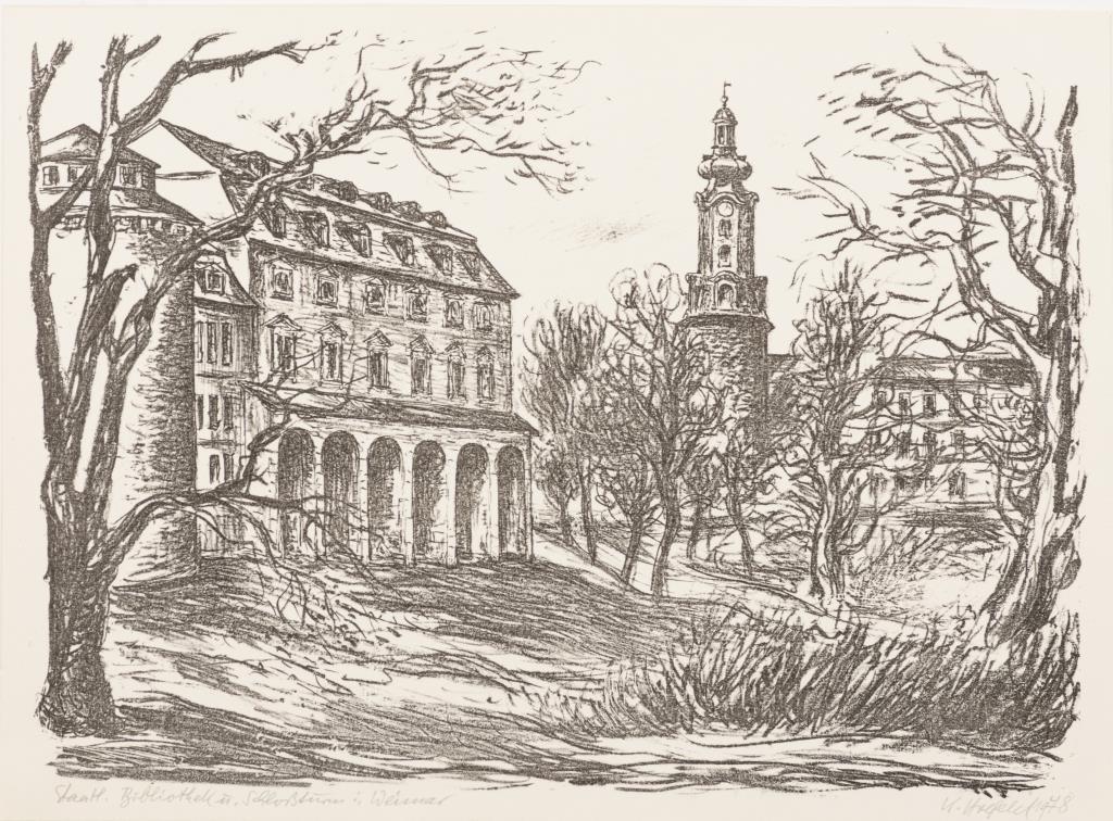 "Staatl.[iche] Bibliothek u.[nd] Schloßturm in Weimar"