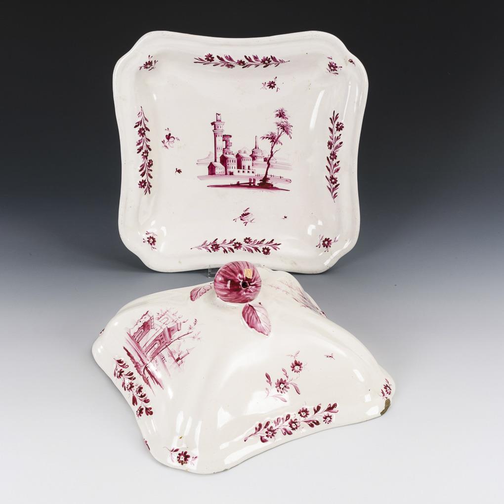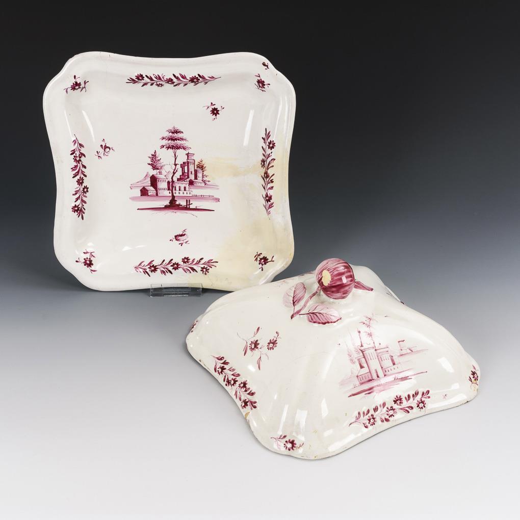 Paar Fayence-Deckelschalen mit Purpurmalerei.