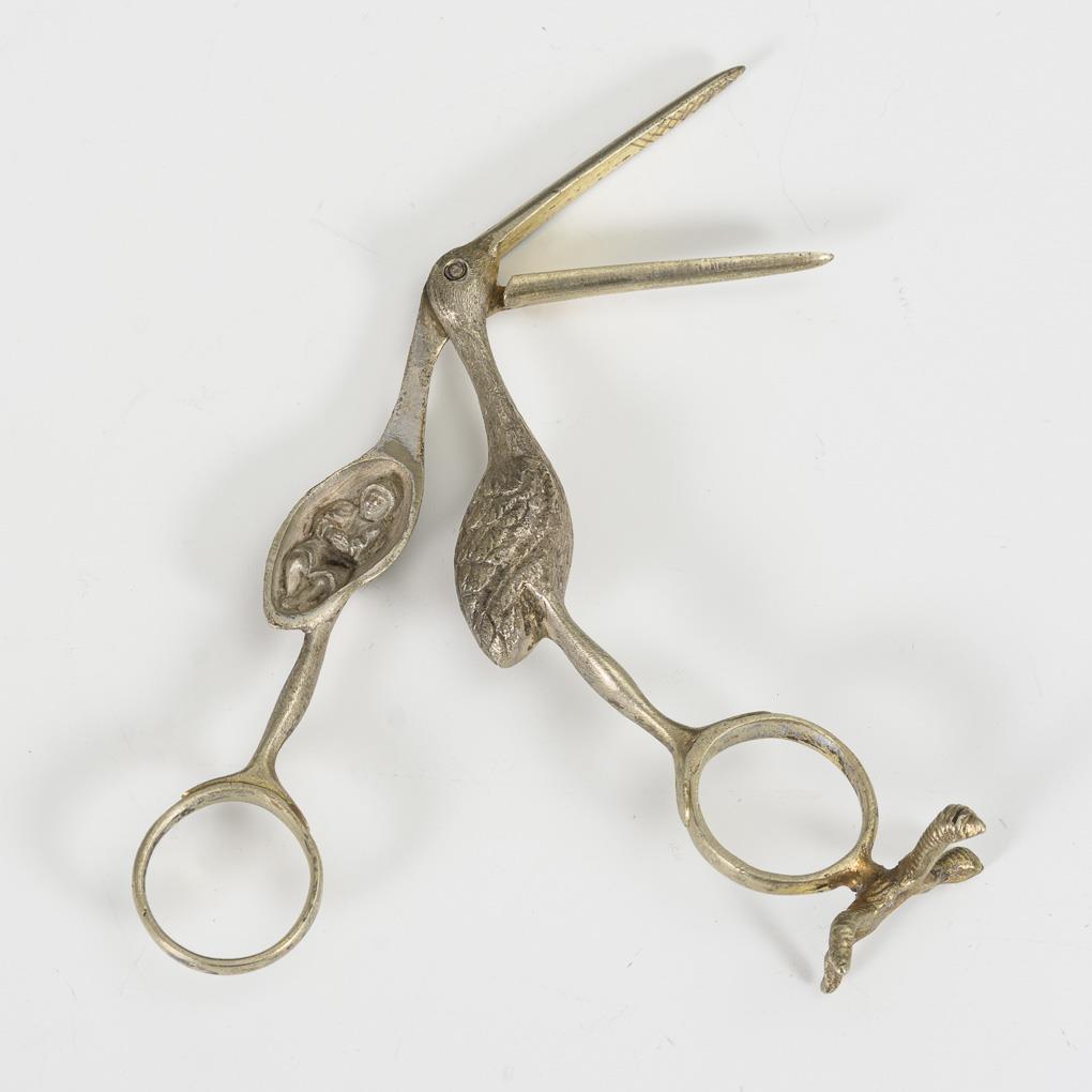 Silbernes Weinprobierschälchen und "Hebammenschere".