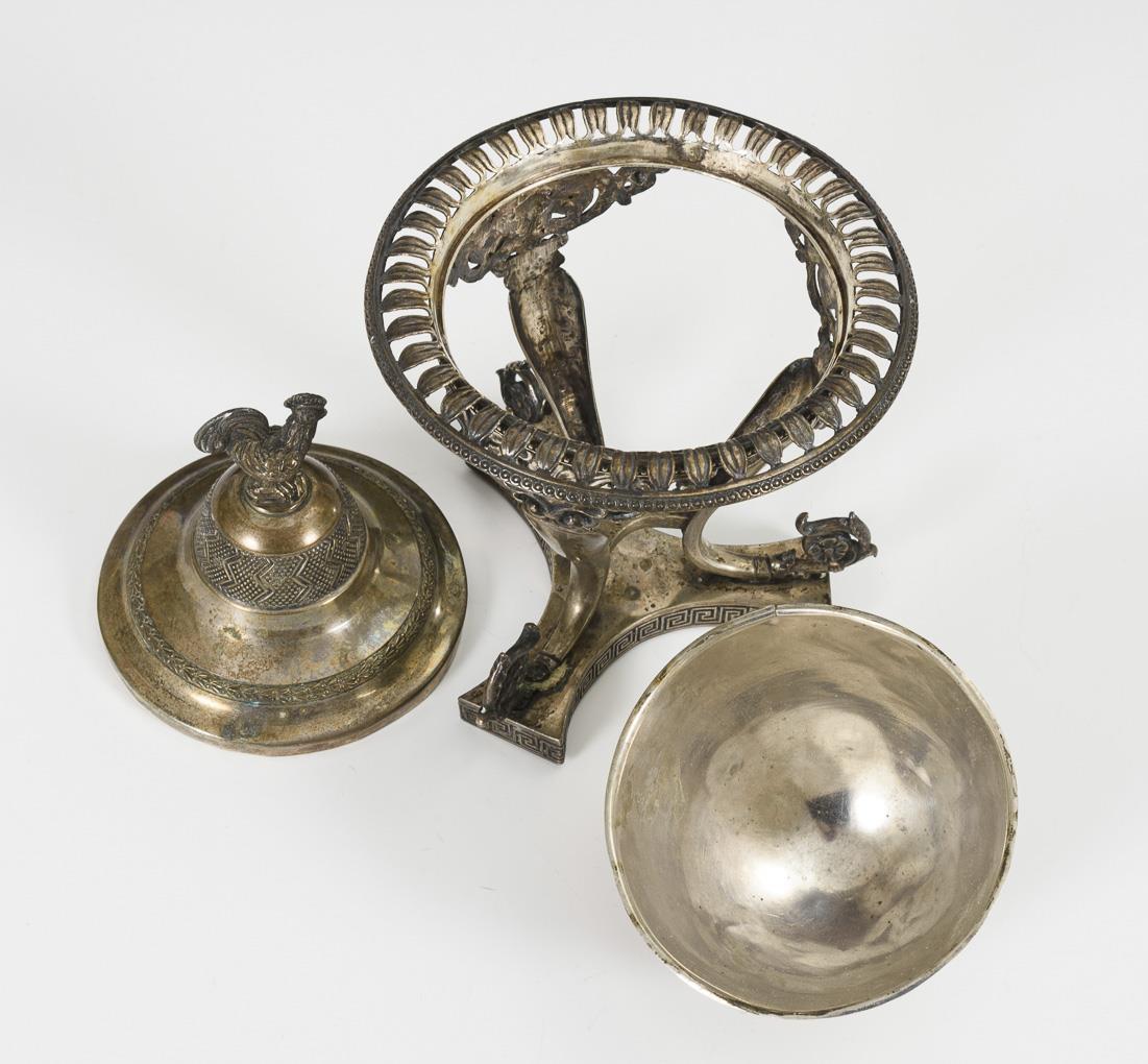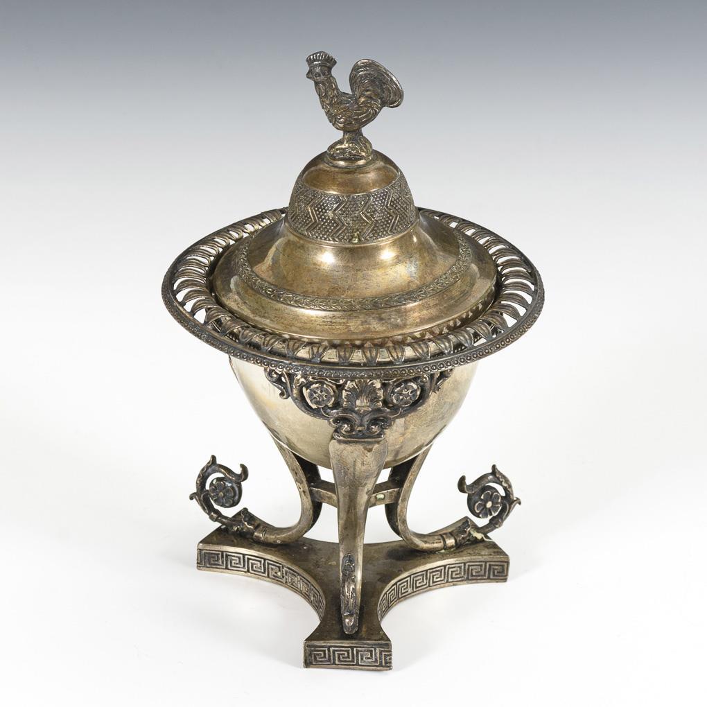 Silbernes Empire-Gefäß mit Hahnenknauf.