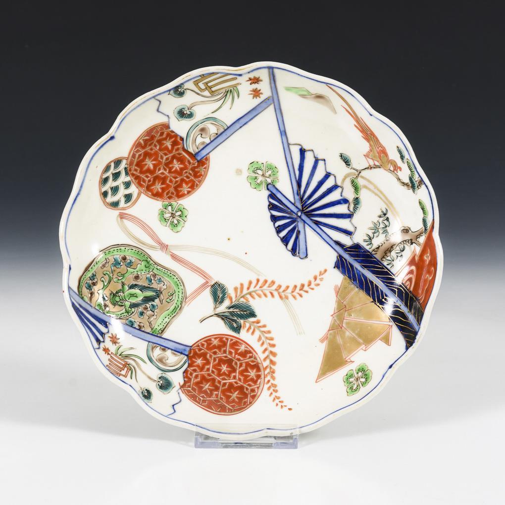 Porzellan, teils in Unterglasur-Blaumalerei, Grün, Rot und Gold. Ø 22 cm.