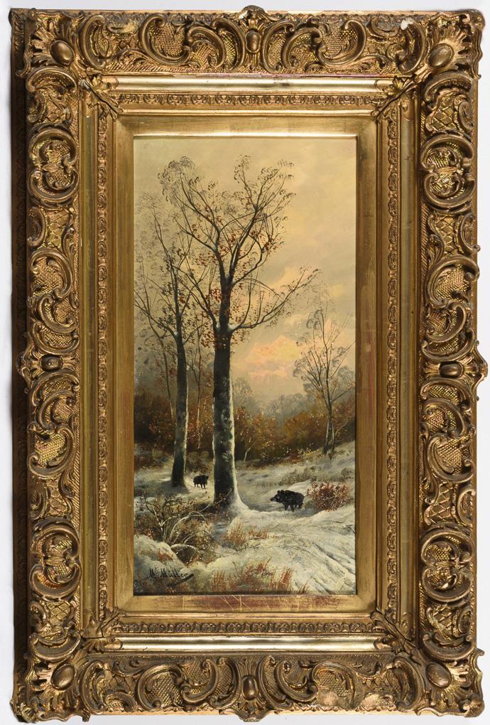 Winterwald mit Wildschweinen