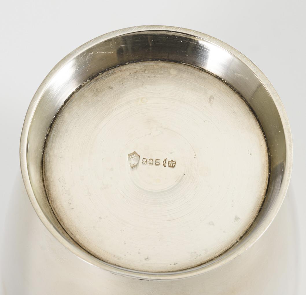 Glatter Becher mit umlaufendem Relief gekreuzter Hammer am Standring.