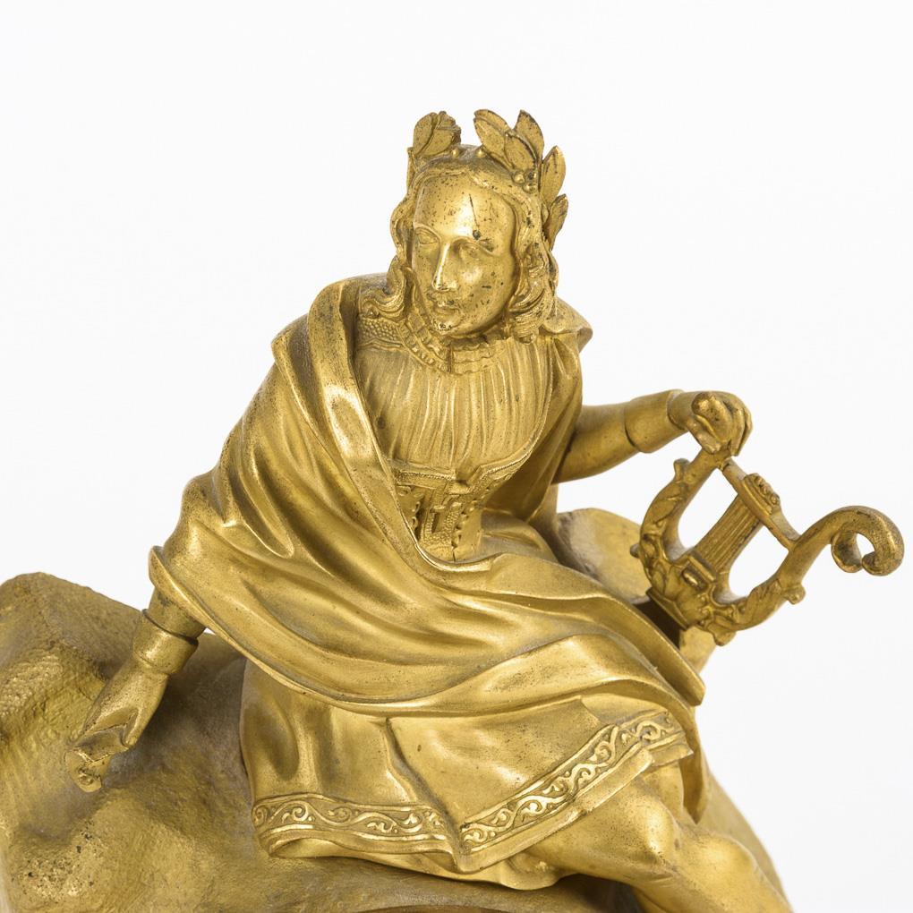 Historistische Pendule mit Lyraspieler.