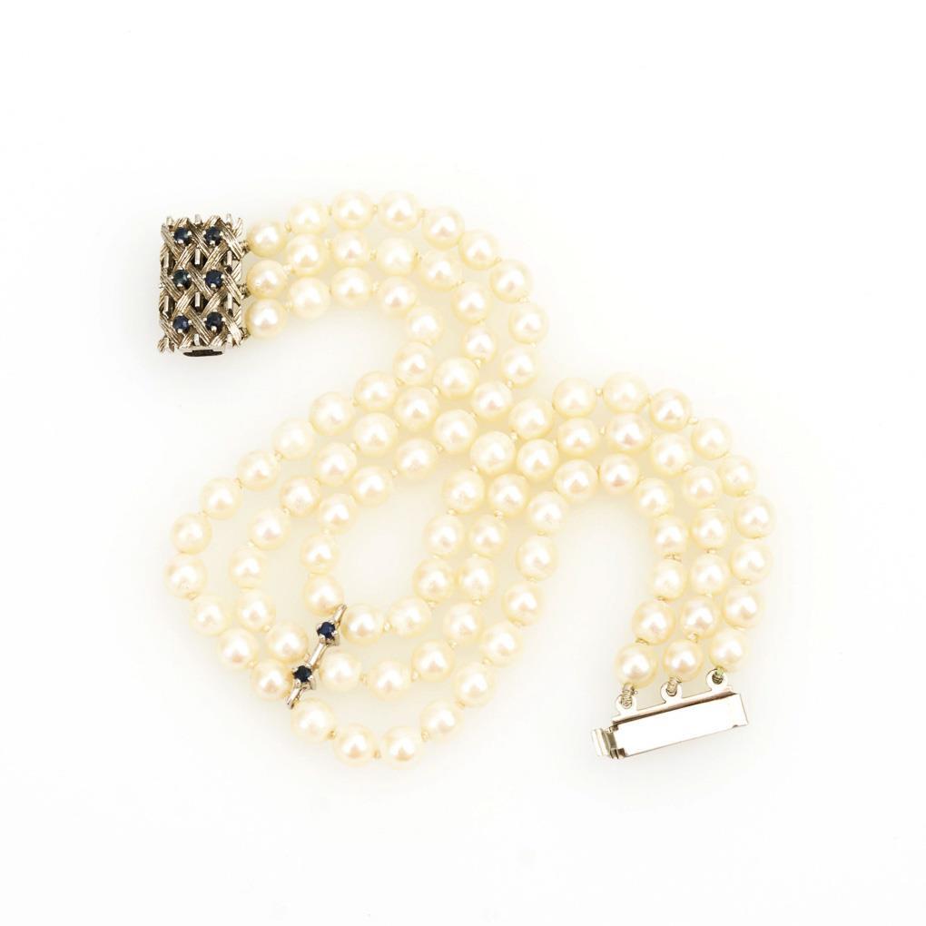 3-reihiges Zuchtperlenarmband mit Saphiren.