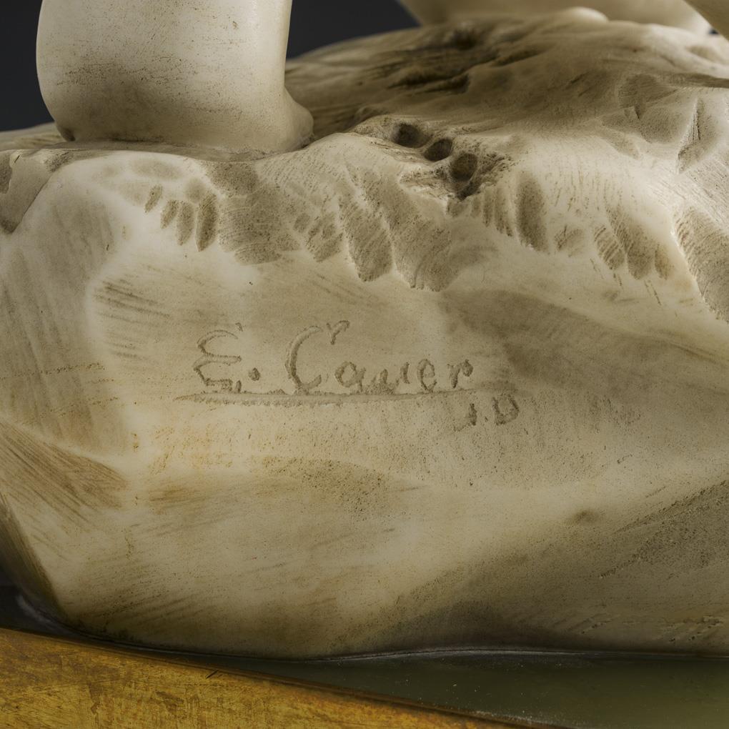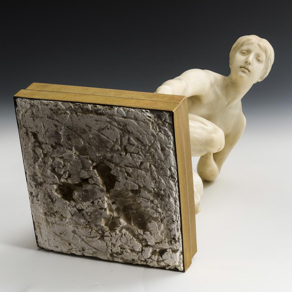 Alabaster oder Cauermasse, Onymarmor-Plinthe in Messingfassung, Sockel mit Gips gefüllt. Bezeichnet mit Zusatz "A.D.". H 41,5 / 47,5 cm.